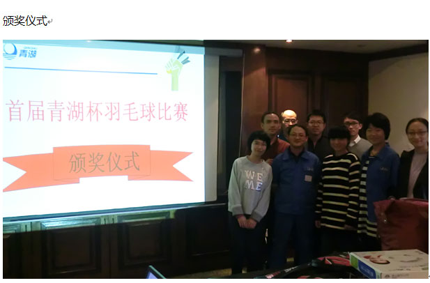 為豐富員工業(yè)余文化生活,增進員工之間的交流,給來自不同部門的同事搭建八小時之外的良好溝通平臺,促進“和諧青湖、健康青湖、快樂青湖”建設,2014年11月9日公司在雅戈爾體育館組織了首屆“青湖杯“羽毛球比賽。本著“我運動、我健康、我快樂”的目的,來自PMC部、質(zhì)量部、IT部、客服部、人事部等員工踴躍報名參與,攜手并肩向快樂出發(fā)。